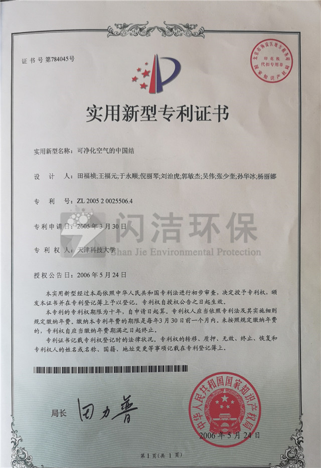 实用新型专利-可净化空气中国结