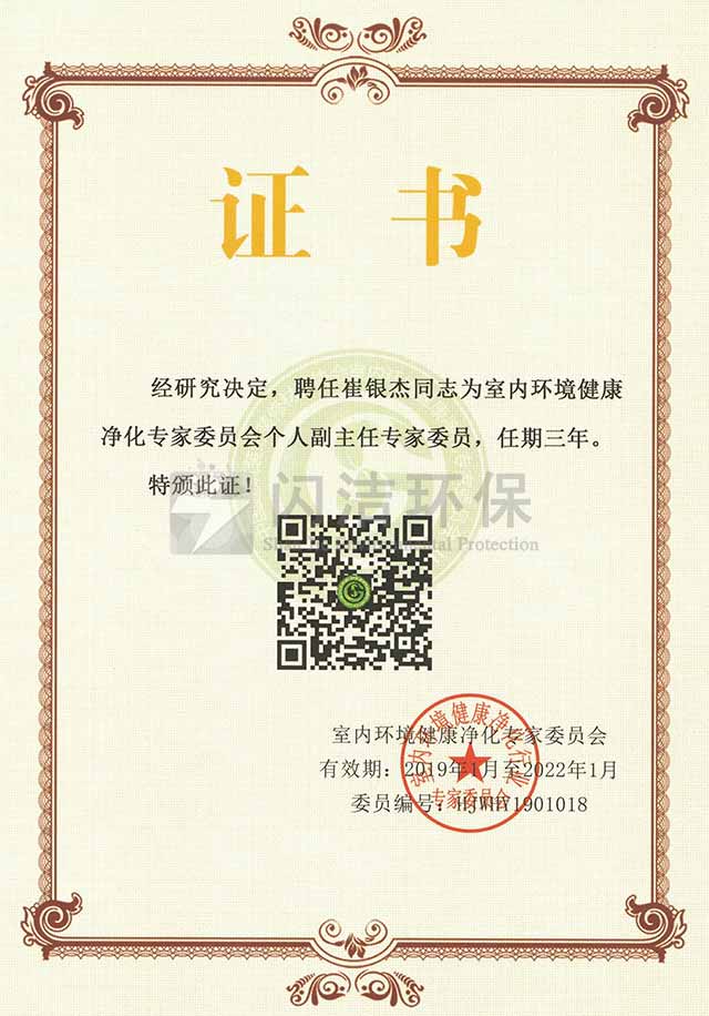 室内环境健康净化委员会个人副主任专家委员